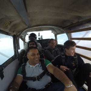 Dad is a afraid of heights but it that’s not an issue, oddly enough, when you jump out of a plane.
